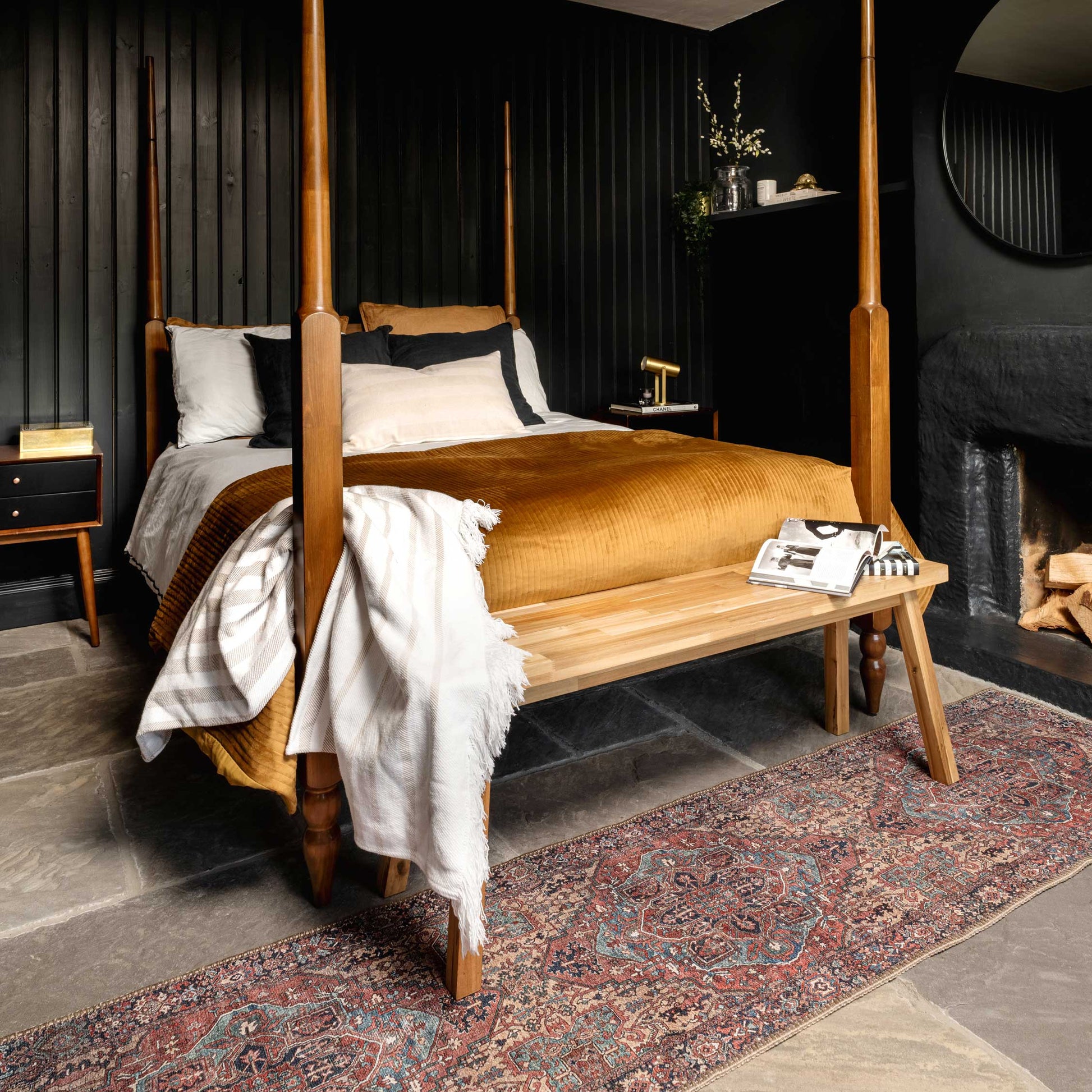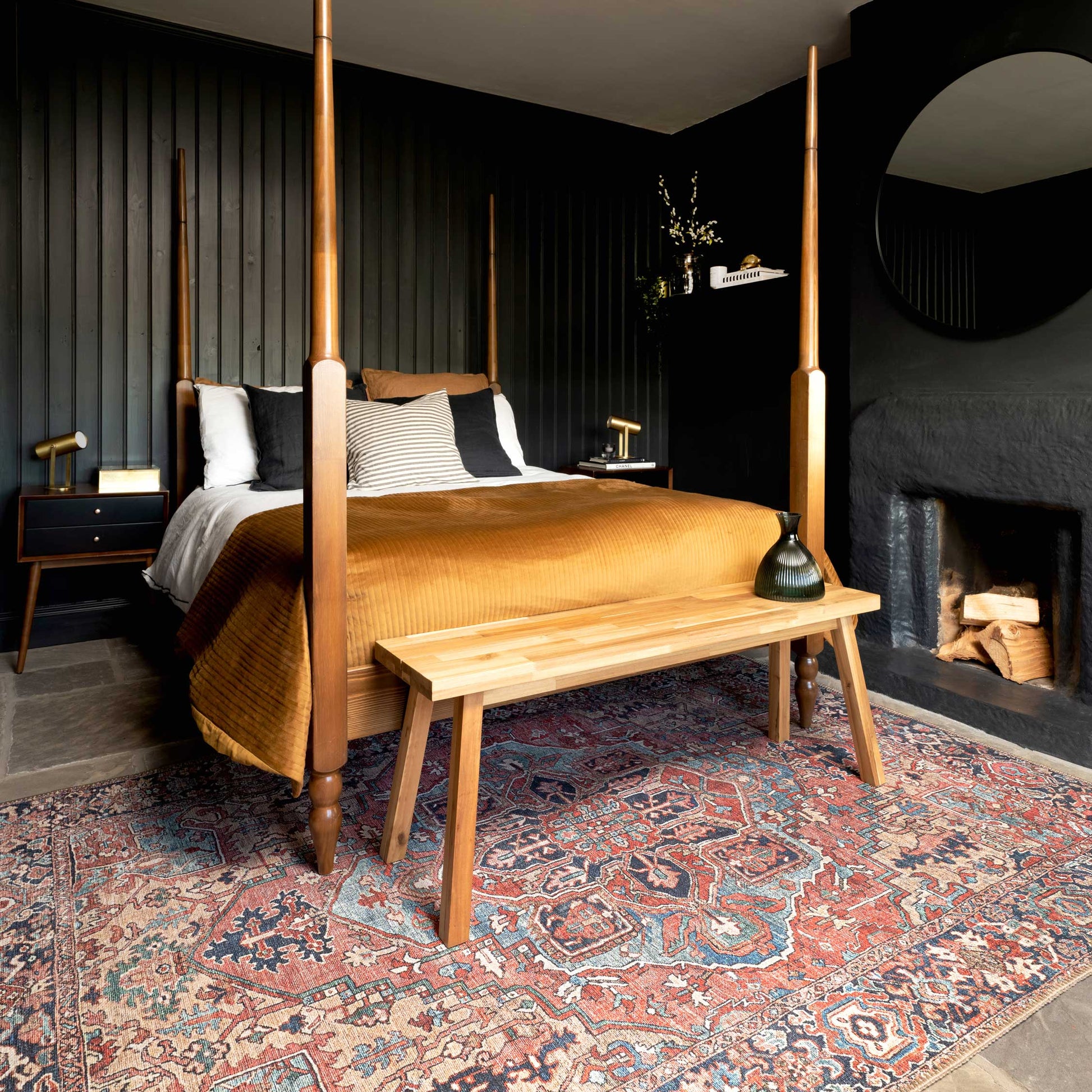 This traditional Kashan inspired rug design allows us a glimpse into the past. Savanna treasures the tales of old and brings them with her into the future where they won’t be forgotten. The intricate symbols in the central chandelier symbolises bringing light and spiritual guidance into your home.